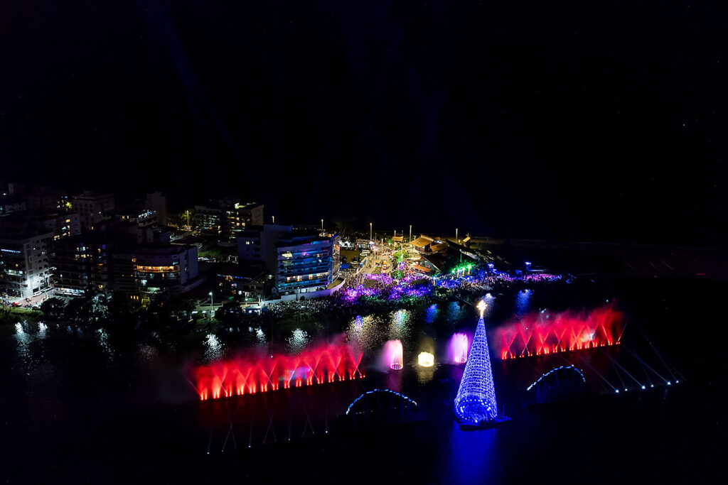 A Prefeitura de Macaé divulgou a programação oficial do Natal Magia 2025 e do tradicional espetáculo das Águas Dançantes, que acontecem entre 27 de novembro e 4 de janeiro. Os eventos, já consolidados no calendário festivo da cidade, vêm registrando crescimento no público e movimentando setores como comércio, hotelaria e gastronomia, fortalecendo a economia local.